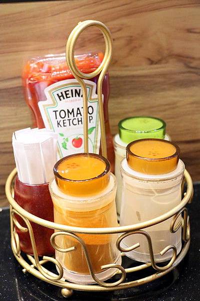 台式、美式、日式、韓式、泰式五種口味的醬料
