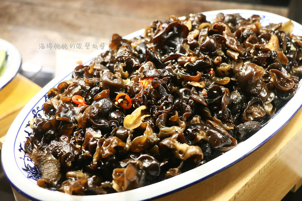 中式冷盤有胡麻醬茄子、紅油淋醬油雞腿、涼拌川耳